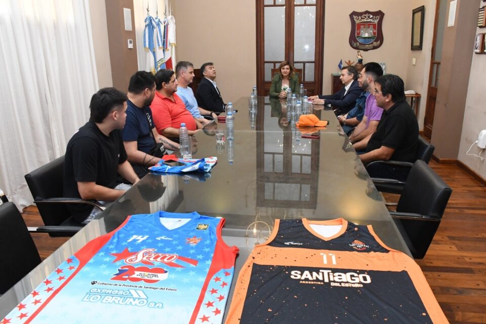 La intendente de la Capital, Ing. Norma Fuentes, junto al secretario de Gobierno Ing Machado, recibió a los jugadores y dirigentes de Red Star y Tiro Federal, los clubes que disputarán la final del Torneo Pre-Federal de Santiago del Estero, organizado por la Federación Santiagueña de Básquet.
