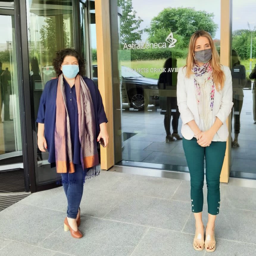 La asesora presidencial Cecilia Nicolini y la ministra de Salud de la Nación, Carla Vizzotti, visitaron hoy el centro de investigación y desarrollo del laboratorio AztraZeneca en Cambridge, Gran Bretaña, como parte de la visita que realizan a ese país para intercambiar experiencias en la lucha contra el coronavirus.
