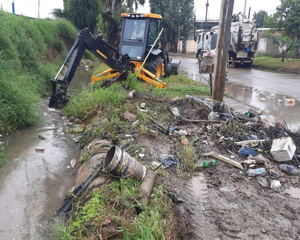 Desde allí, se extrajeron cantidades de todo tipo de residuos, de manera de favorecer el drenaje a lo largo de la extensión de los canales derivadores. Además de la limpieza de bocas de tormenta de las calles.